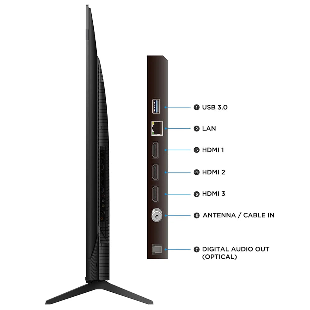 - Portas de Entrada e Saída: HDMI, USB, LAN, Antena, Áudio Óptica
