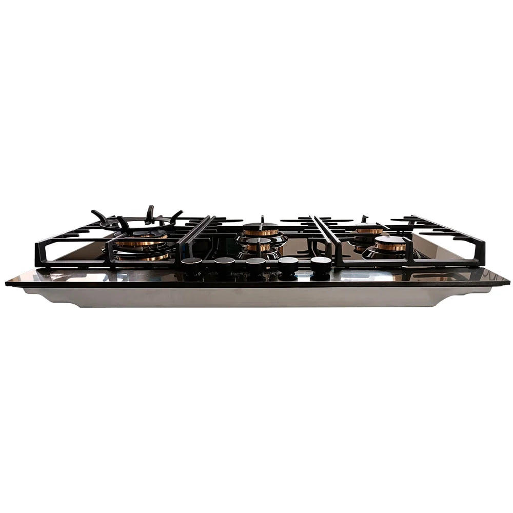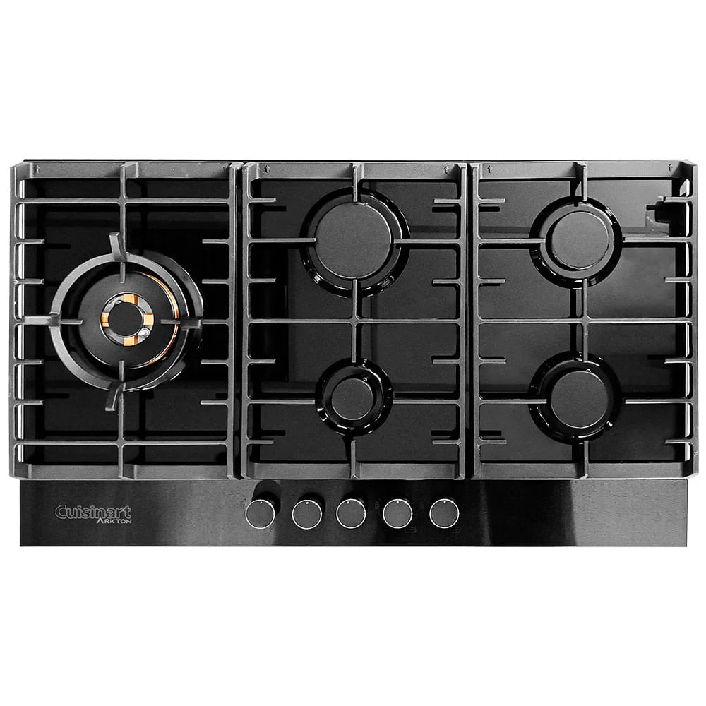 Apresentando o Cooktop a Gás 75cm Cuisinart Preto Vidro com 05 Bocas - 4092740302, um exemplar de estilo e funcionalidade. Projetado com um acendimento superautomático e queimadores SABAF, este cooktop é a combinação perfeita de potência semi-profissional e facilidade de uso. Com um design moderno e elegante 'built in', botões removíveis e uma mesa sem furação, este cooktop é tão atraente quanto eficiente. O plano de trabalho em vidro temperado preto não é apenas esteticamente agradável, mas também durável, garantindo uma longa vida útil do produto.
