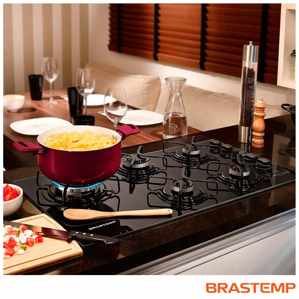 Cooktop Brastemp 5 Bocas Preto de Vidro Temperado com Timer Touch BDT85AE