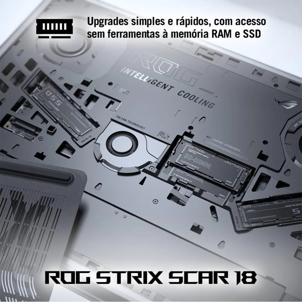 Com o Notebook Gamer ROG Strix SCAR 18, você obtém desempenho extremo, durabilidade e facilidade de uso, tudo em um único produto. Ideal para jogadores e profissionais que exigem o máximo de suas máquinas.