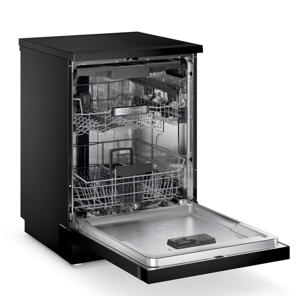 Apresentamos a nova linha de lava-louças Brastemp com capacidade para 15 serviços, modelo BLF61A. Este aparelho de alto desempenho traz a inovação do Smart Sensor, capaz de detectar o nível de sujeira das louças e selecionar automaticamente o ciclo de lavagem mais adequado. O resultado é uma limpeza impecável, economia de água e energia, e mais tempo livre para você. Com um design elegante na cor preta, esta lava-louças também ajuda a manter a sua cozinha organizada, oferecendo amplo espaço interno para acomodar suas louças.