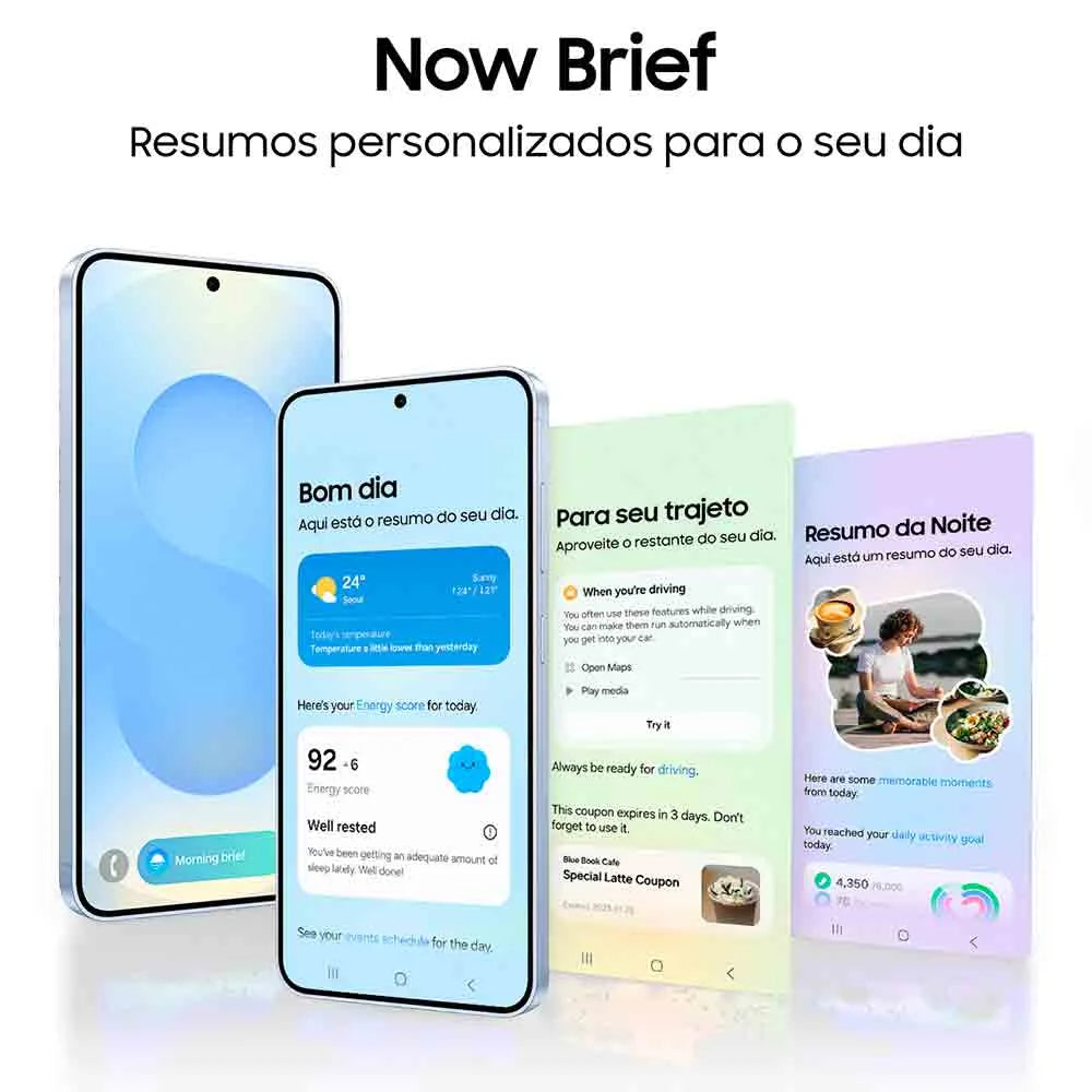 Projetado com uma identidade de design única da série S, este smartphone apresenta um acabamento elegante e moderno, com molduras finas e uniformes que proporcionam uma visualização mais ampla. A experiência do usuário é aprimorada com recursos intuitivos e práticos, incluindo a nova função Now Bar Now Brief, que permite verificar as notificações para tarefas em andamento e receber um resumo diário de suas atividades. Esta é a tecnologia ao serviço da sua produtividade e entretenimento, oferecendo uma experiência móvel sem comparação.