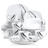 Segurança e durabilidade também são fundamentais neste conjunto. Embalado em uma caixa de papelão resistente, que passou por rigorosos testes de queda, este conjunto promete durar por muitos anos. Sua superfície é mais lisa que a dos conjuntos de jantar convencionais, mas ainda assim robusta, tornando-o adequado para uso por pessoas de todas as idades. Com o devido cuidado, este conjunto de jantar se tornará uma peça fundamental na sua cozinha por muitos anos.